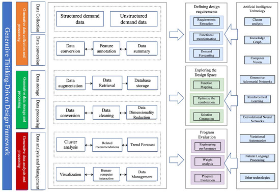 The design process rarely leads directly to optimal results. Instead, it typically goes through several phases of internal and external information exchange, ultimately leading to the final design [1]. This progression is often characterized by a fuzzy, iterative cycle involving diffusion, interaction, and synthesis, resembling a spiral cognitive process. Since the early 2000s, design thinking has become widely adopted in business and engineering as a framework for innovation; however, the rapid advances in artificial intelligence (AI) over the last decade—particularly the breakthroughs in generative AI since 2020—present both significant challenges and opportunities for traditional design thinking methods [2]. As massive data sources increasingly overlap with traditional manual analysis, the role of machine intelligence in design has become increasingly important [3]. AI technologies are increasingly integrated into human design activities because of their ability to solve complex, ambiguous and uncertain design problems by processing large, complex datasets [4,5].