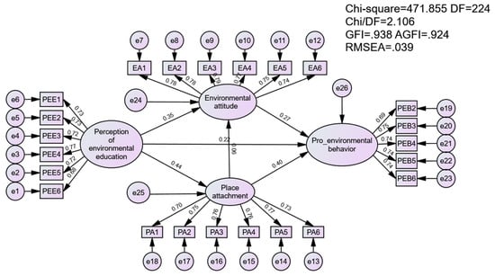 | Perception of environmental education → Place attachment → Pro-environmental behavior | 0.178 | [0.125, 0.248] | 35.74% |