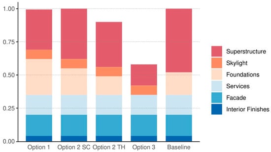 Objective 3—To estimate the proportion and value of EC within the total life cycle of industrial buildings in four case study renovations and provide an overview of the benefits of considering embodied carbon inclusion in renovations of industrial buildings.