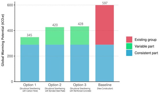 - Opher, T.; Duhamel, M.; Posen, I.D.; Panesar, D.K.; Brugmann, R.; Roy, A.; Zizzo, R.; Sequeira, L.; Anvari, A.; MacLean, H.L. Life cycle GHG assessment of a building restoration: Case study of a heritage industrial building in Toronto, Canada. J. Clean. Prod. 2021, 279, 123819. [Google Scholar] [CrossRef]