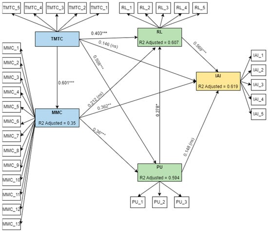 Perceived usefulness mediates the relationship between TMTC and IAI.