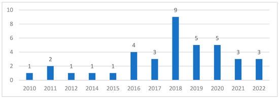 The final selection of papers included in this SLR reveals that there has been growing interest in privacy information disclosure over the last decade in the context of IoT applications. Figure 4 shows that, during the years 2010–2022, there has been an increase in publications related to behavioral intention and the actual behavior of AI-related IoT applications, while, during the years 2010–2015, the published papers in the area were relatively scarce, and shockingly, in 2013, there were no publications. Remarkably, just before COVID-19 and post-COVID-19 were the highest publications (2018 and 2020–2021). As a result, we can infer that the investigation of users’ privacy information disclosure to use AI-driven IoT has grown significantly during the last six years, most likely from 2016 to 2022, considering the time delay between investigations and academic publications. Most papers (99%) were published in peer-reviewed academic journals, while only a few were in conference proceedings (see Table 4).