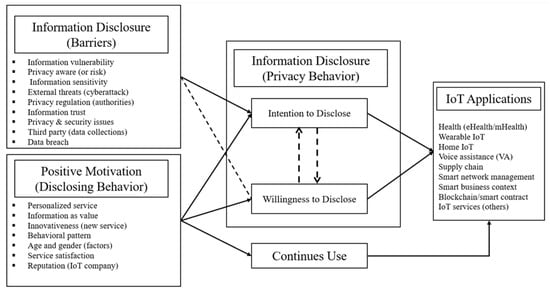 - Mugariri et al. [17] and Xi and Ling [18], due to the exponential growth of AI-enabled IoT-enabling technologies around the globe, users’ privacy information disclosure-related issues are becoming increasingly significant concerns. This motivation stems from the fact that an individual’s behavior regarding disclosing private information has never been addressed in the context of AI-enabled IoT technologies before.