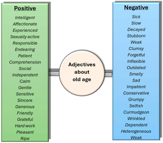 Studies have shown that younger generations often have negative perceptions of old age [18,19]. For example, Gutiérrez and Mayordomo [20] found negative stereotypes of older people among university students, particularly in terms of personality and social motivation. Furthermore, studies such as those of Sanhueza and Felipe Rello et al. [21,22] have found differences in the perception of old age among students from different disciplines, showing that these stereotypes can vary significantly depending on the field of study.