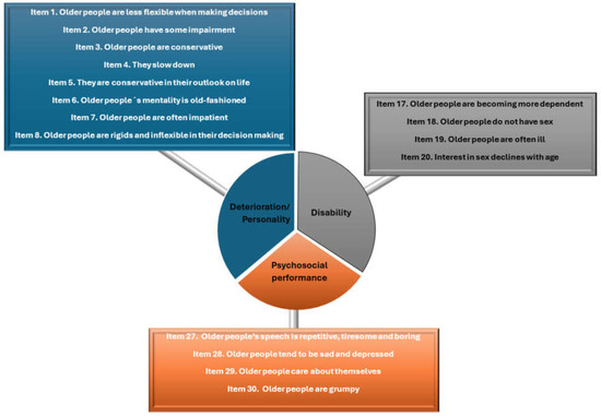 The increase in life expectancy and the aging of the population are phenomena that, while representing significant achievements, do not correspond to the social valuation of older people. This imbalance is influenced by deeply rooted misconceptions, stigmas, and stereotypes [15]. Attitudes, which are dispositions for evaluating symbols, objects, materials, or people, play a crucial role in individual and social behavior [16]. Melero and Buz emphasized that these attitudes act as mental schemas that shape the perception and retrieval of information about others, thus influencing thought and behavior [17].