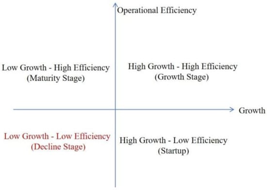 4.1.3. Enterprise Life Cycle Assessment and Analysis Based on the Dual-Indicator Matrix