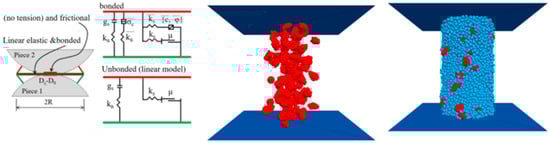 The linear parallel bond model (PBM) is utilized to replicate the strain softening behavior of concrete, as evidenced by various studies that explore the material’s response under different loading conditions. This model contains two kinds of interface behaviors: