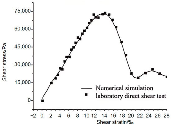 In the PFC3D particle flow model, the contact behavior and interaction between particles jointly determine the macroscopic mechanical properties of materials. To ensure a high degree of consistency between numerical simulation and real physical behavior, it is essential to calibrate micro-parameters effectively. This process involves fitting mesoscopic parameters, such as normal and tangential stiffness, through direct shear tests, as discussed in the study by Reference [23], to achieve a systematic match with macroscopic responses.