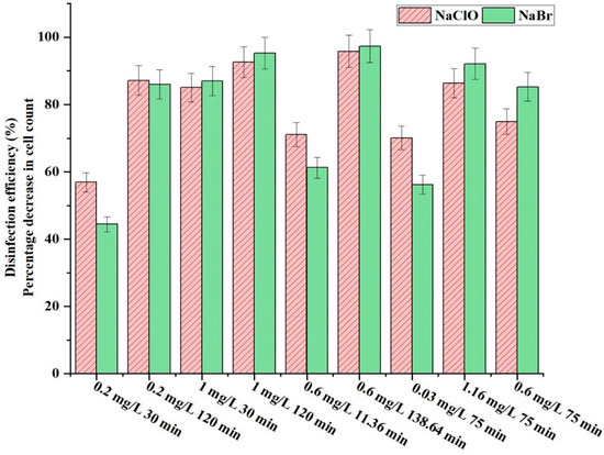 Comparison of disinfection efficiency (cell count) of NaClO and NaBr.