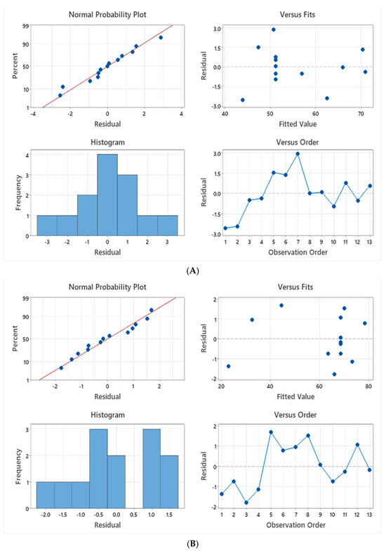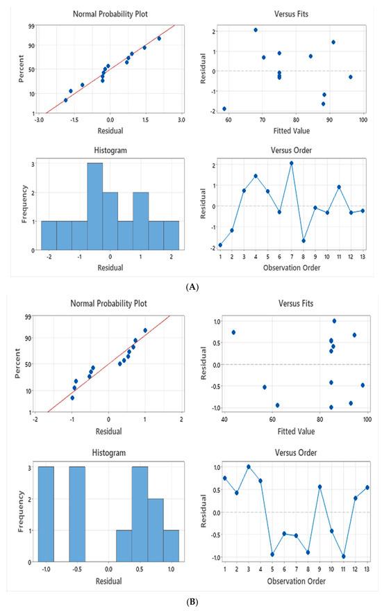 Residual plots of RSM design under (A) NaClO (B) NaBr: Coupon’s Weight.