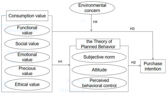 Integrating consumer value with the Theory of Planned Behavior (TPB) model is crucial, as consumers’ purchase intentions are influenced not only by attitudes and subjective norms but also by their intrinsic values [4]. Consumer value can profoundly affect consumers’ behavioral choices, particularly in areas involving ethical and environmental responsibilities. By incorporating consumer value theory into the framework of the TPB model, we can gain a deeper understanding of consumer motivations, thereby more effectively predicting their purchasing behavior.