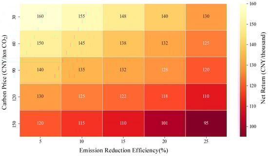 At CNY 150/ton, the return further declines to CNY 101,000, approaching the threshold of financial viability for projects implementing moderate-efficiency retrofit strategies.