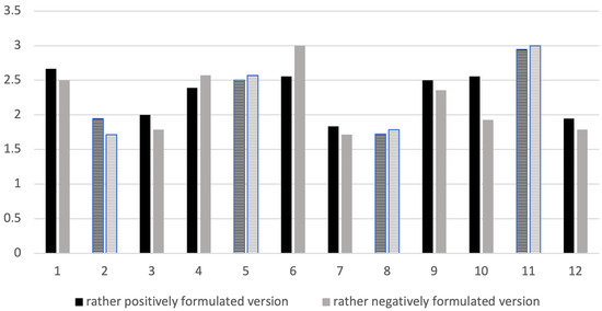 For item 10 (“I will continue to think about the topic of the worksheet after school”.), the mean score for the positively worded version was 0.62 points higher than the mean score for the negatively worded version. Accordingly, the more positively worded worksheet may have had a more encouraging effect on the learners, potentially motivating them to engage in post-completion reflection.