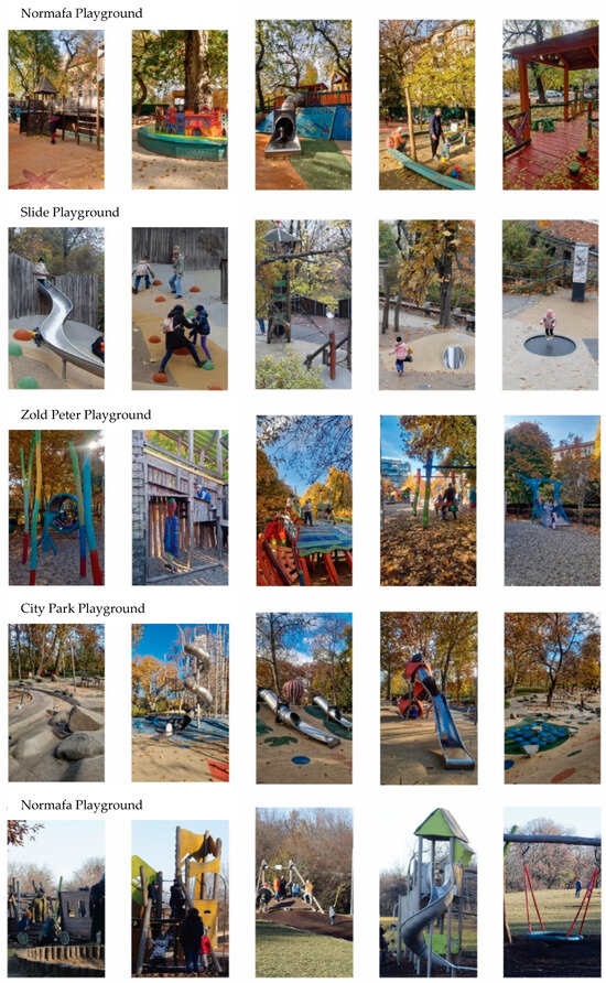 The five playgrounds selected for this study in Budapest represent a diverse range of contexts, each holding unique features and representing different spatial play experiences.