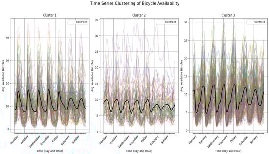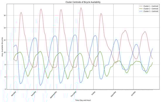 Managing peaks in demand is essential to prevent bicycle shortages or overcrowding at specific stations. Analyzing usage patterns enables cities to anticipate critical situations and optimize bike-sharing operations. Studies conducted in Chicago [] have applied time-series clustering techniques to identify trends in bike-sharing systems, offering valuable insights into demand fluctuations. Similarly, research in New York [] has utilized predictive models to forecast station-level demand, helping operators make informed decisions to improve availability and efficiency.