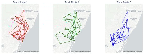 To address these limitations, several assumptions have been made. The fleet is assumed to consist of three vehicles, each with a capacity of 50 bicycles, starting their routes at half capacity. The estimated loading or unloading time at each station is set at two minutes. The designated starting point for all redistribution routes is Gran Via de les Corts Catalanes 760 (Station 1), selected for its central location in Barcelona. At the end of their shifts, workers must return the vehicles to this station to ensure a smooth transition for the next team. Additionally, the number of bicycles loaded or unloaded at each station is fixed. If a station is visited, a third of the total docking capacity is either added or removed.