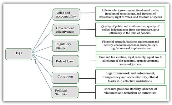 17]. The recent literature once again acknowledged the impact of the quality of institutions on the sustainable environment and showing that the efficacy of institutions is a crucial catalyst for environmental quality in a country. Consequently, to achieve higher levels of green growth, it is necessary to have a positive and effective performance of green institutions, as correctly pointed out by Ahmed et al. [
