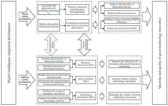 In summary, the influence mechanism of digital intelligence integration development on the quantity and quality of green technology innovation is shown in Figure 1.