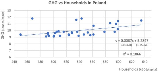 There is a significant correlation between household energy consumption and GHG emissions in Poland.
