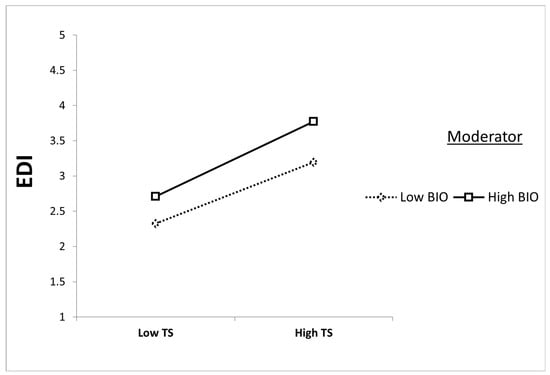 Biospheric values moderate the relationship between tourism sustainability and eco-destination image, with the positive relationship being weaker among tourists with low biospheric values.