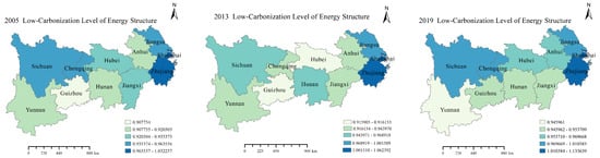 The LCL of the energy structure of the YREB’s 11 provinces in 2005, 2013, 2021.