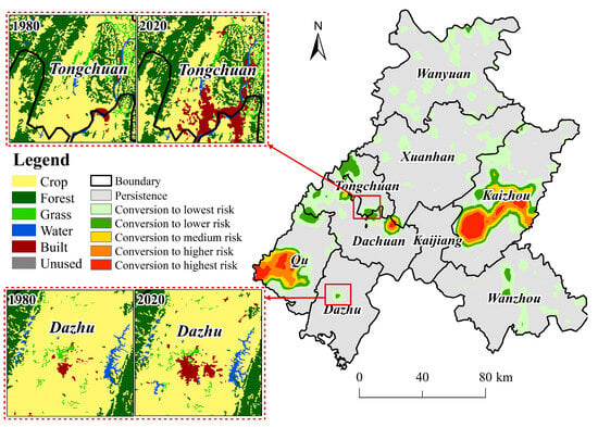 4.1. LUCC Process at Spatiotemporal Scales