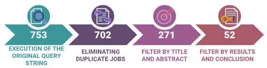 The selected sources applied the search string, yielding an initial collection of 753 papers (see Table 2). The data were collected using the export options available in each digital library. After performing a search to eliminate duplicate indexed documents, we were able to reduce the initial number due to duplication, leaving a total of 702 documents. After applying filters 1 and 2, 271 articles were selected for the final analysis, of which 51 studies were selected in the third review.