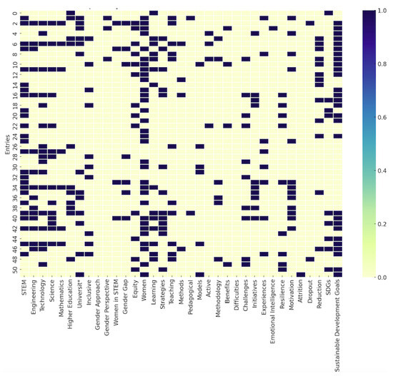 Given the interdisciplinary nature of this study—located at the intersection of STEM education, inclusive pedagogical practices, and socio-emotional competencies—a wide range of keywords was required to ensure adequate coverage of the topic. The selected terms were grouped into four thematic dimensions (STEM, pedagogy, emotional skills, and gender inclusion), allowing us to capture diverse expressions and terminologies used across different disciplinary fields. This breadth was necessary to avoid excluding relevant studies due to conceptual or disciplinary language variations.