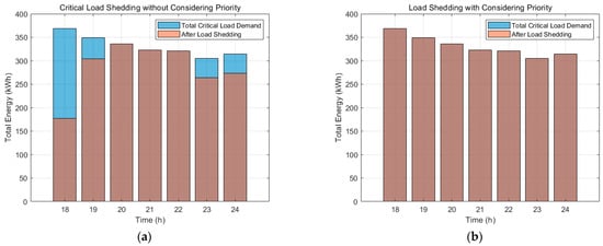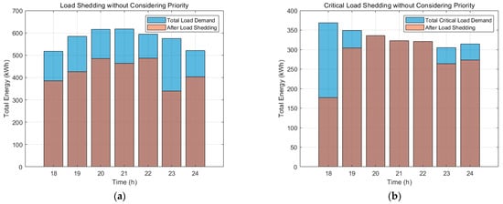 As the integration of renewable energy and ESSs within microgrids increases, strategies that leverage these DERs are being proposed. ESSs convert excess generated energy into chemical energy for storage, enabling their use when there is either an overproduction or a shortage in generation. By managing charging and discharging, ESSs can help balance supply and demand. This is particularly valuable for renewable energy sources, which cannot control their generation output. Thus, ESSs are frequently coupled with DERs. Numerous studies have introduced optimal scheduling techniques that focus on minimizing overall system operating costs by optimizing the use of energy storage. First, day-ahead and real-time co-optimization schemes have been proposed for industrial prosumers, improving profit while ensuring contract fulfilment. Secondly, distribution-level studies combine battery storage with demand response to reduce both total expenditure and renewable curtailment [6]. A separate line of work employs interval or affine-arithmetic formulations to capture uncertainty and battery degradation costs in microgrid scheduling [7,8]. Another contribution is a three-stage flexibility-provision framework that enables radial networks to meet TSO requests at minimal economic loss [9]. In [10,11], methodologies were proposed from a prosumer perspective that focus on maximizing energy management efficiency and profit. Furthermore, even if an incident leads to a portion of the network becoming isolated, the presence of distributed generation within that isolated system can maintain a continuous power supply, thereby reducing the duration of outages. However, despite the ability to supply power to the affected area using renewable energy and ESS, the intermittent nature and output limitations of renewable sources may still necessitate load shedding for certain loads. In such cases, determining which loads to disconnect becomes a critical consideration.