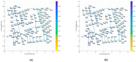 This approach allows for a comparison between the conventional pricing model—which considers only power losses—and the pricing model proposed in this study, which also accounts for voltage sensitivity and prioritized power supply. The mathematical formulation and optimization are performed using ‘Yalmip’ and ‘Gurobi’, with the simulation executed in MATLAB 2023b.