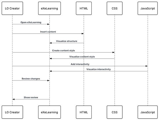 Following a literature review [30,31,32,33,34] and a comparative analysis based on the aforementioned aspects, it has been determined that the most effective tools for developing learning content are eXeLearning and Adobe Captivate. These tools successfully integrate technological capabilities with the requirements of individualized teaching solutions. eXeLearning, an open-source tool, facilitates content creation through the use of HTML, JavaScript, and CSS. This approach ensures flexibility in adjusting color contrasts, font sizes, and other essential interactive features, thereby catering to the needs of students who require additional support.