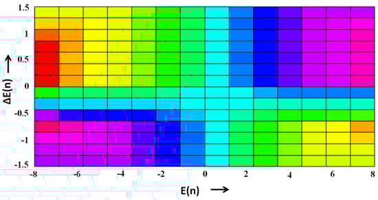 Fuzzy logic controllers can effectively manage nonlinearity, operate with imprecise inputs, and do not require perfect mathematical models. Change in power and change in current are the two inputs given to the fuzzy controller at a sampling instant of time n (seconds), and the output is . Corresponding error E(n) and change in error ∆E(n) signals are given by Equations (3) and (4).