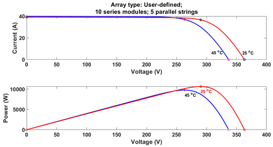 where —solar current; —reverse saturation current; —light generated current; —elementary charge; —terminal voltage of cell; —diode’s ideality factor; —Boltzmann’s parameter; —solar temperature in Kelvin; —series resistance; —parallel resistance; —solar irradiance; and —area of the solar cell.