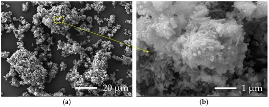 The morphology of the FA is shown in Figure 2: mainly agglomerates (Figure 2a) consisting of very fine crystals (Figure 2b) with a size below the resolution of X-ray microanalysis were observed.