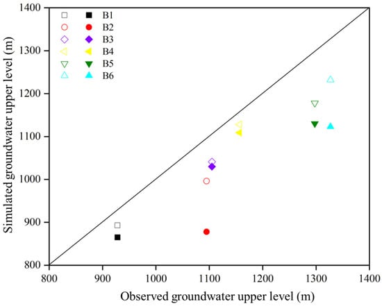 After adjusting the permeability coefficients of each aquifer, the corrected values of the borehole water level errors are presented in Table 2. Following the correction, the simulated water levels in the boreholes are relatively lower, and the relative errors are within 1.5% of each other.