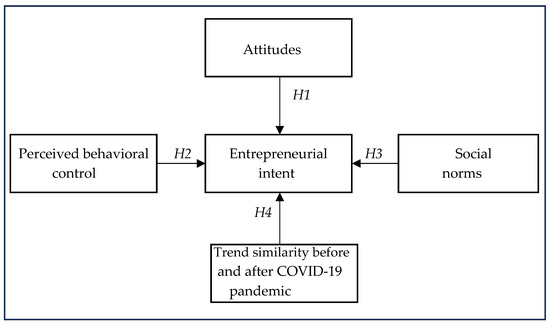 Research indicates that the pandemic not only evoked feelings of fear and uncertainty among potential young entrepreneurs but also led to increased recognition of entrepreneurship as a viable career path due to changing economic dynamics and job market limitations [1,2]. Furthermore, the crisis has prompted a shift in educational approaches, with entrepreneurship education playing a pivotal role in cultivating an entrepreneurial mindset and enhancing students’ perceived control over their entrepreneurial intentions (EIs) [3]. By understanding the interplay between attitudes, social norms, behavioral control, and entrepreneurial intentions amidst the COVID-19 pandemic, scholars can better inform educational strategies and policies aimed at fostering a new generation of entrepreneurs equipped to navigate uncertainties [4,5].