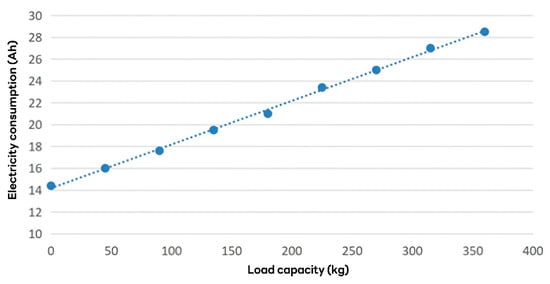 Following thorough research and computation, the power consumption of various loads at a speed of roughly 30 km/h is determined. As illustrated in Figure 1, the vehicle load and energy consumption essentially follow a linear relationship.