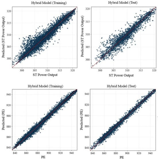 This study investigates the impact of rising AT and SST due to global warming on the ST Power Output and the PE of a CCPP using ML techniques based on a series of input variables. For this purpose, various ML regression approaches, including MLR and ANN, were compared as part of a performance evaluation. In the MLR and ANN models, the data were split into training and test sets, with 70.2% used for training and 29.8% for testing in the MLR model, and 69.9% used for training and 30.1% for testing in the ANN model. Based on the comparison results, a hybrid model was proposed to improve performance. Data from 16,006 h of full-load operation at the power plant, covering the period from February 2018 to September 2024, were used for each variable.