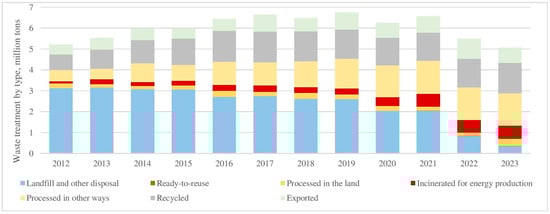 Waste treatment by type in Lithuania from 2012 to 2023 [44].