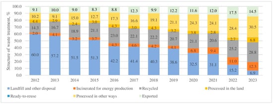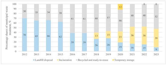 Structure of waste treatment in Lithuania from 2012 to 2023 [44].