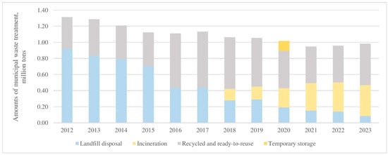 Municipal waste treatment by type in Lithuania from 2012 to 2023 [44].