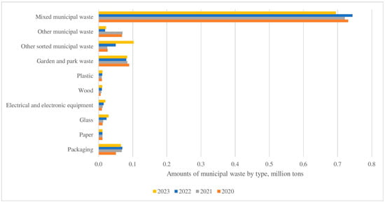 - Stankevičienė, J.; Bužinskė, J. Trends of municipal waste flows, composition, treatment in Lithuania and its regions. In Proceedings of the International Scientific Conference on Contemporary Issues in Business, Management and Economics Engineering, Vilnius, Lithuania, 13–14 May 2021. [Google Scholar] [CrossRef]