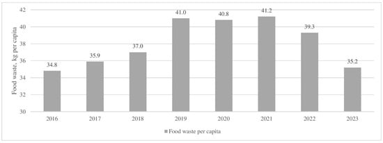 - The analysis of food waste indicated an increase in food waste from 2016 to 2021 to 41.2 kg of food per capita. This type of waste is rarely sorted and is a recognized issue in the country. In 2023, 35.2 kg of food was wasted per year compared to 34.8 kg seven years ago.