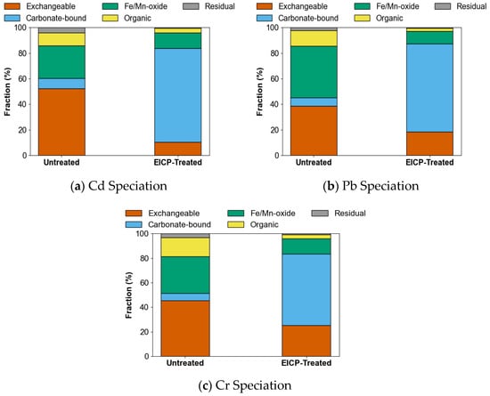 Metal speciation shifts in Cd-, Pb-, and Cr-contaminated soils post-EICP.