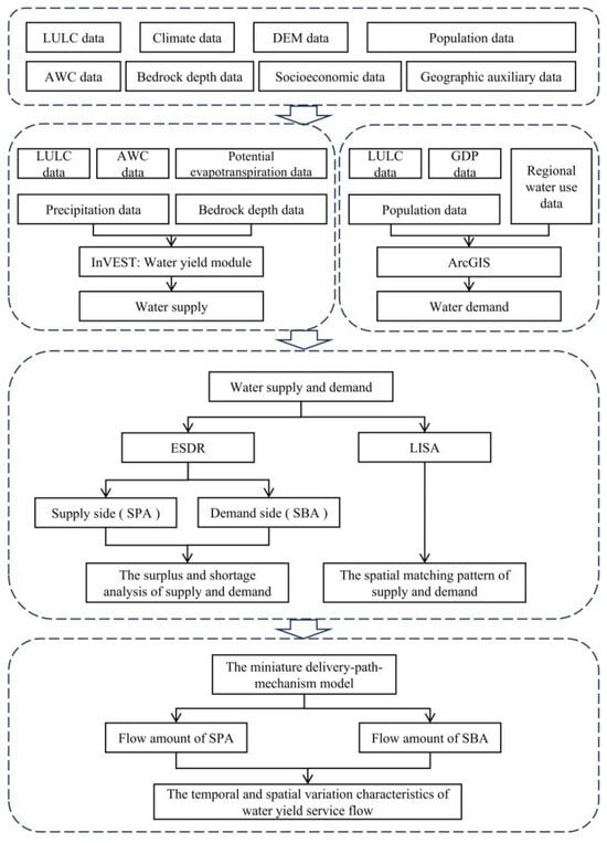 Schematic diagram of water yield service flow (adapted from Su et al., 2024 [22]).