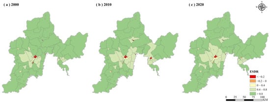 The ESDR integrates ecosystem service supply (ESS) and human demand (ESD) to assess their spatial equilibrium [42]. The formula is as follows: