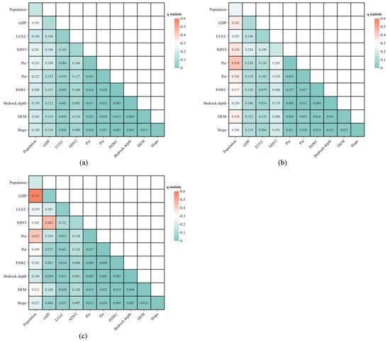 Interaction detection for water yield ecosystem service flow. (a) 2000; (b) 2010; (c) 2020.