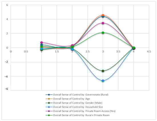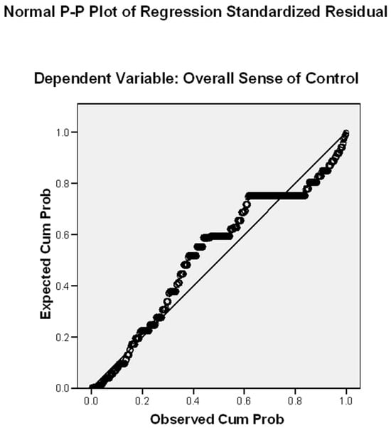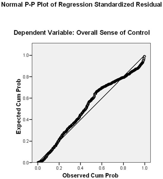 The study’s key variables demonstrated meaningful variation across the sample (Table 2). The dependent variable, overall sense of control, showed moderately high levels (M = 4.08, SD = 1.10) on a 6-point scale. Its two components revealed interesting differences: control of activities (M = 4.32, SD = 0.90) scored slightly higher than control of opinion (M = 4.31, SD = 0.86), with personal issue opinions (M = 4.42, SD = 0.88) ranking higher than general matters (M = 4.21, SD = 1.05).