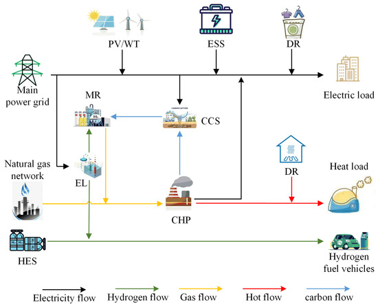 - Luo, Z.; Wang, Q.; Wang, H.; Zhao, W.; Yang, L.; Sheng, X. Optimal scheduling of comprehensive energy systems considering carbon capture and electricity to gas conversion. Electr. Power Autom. Equip. 2023, 42, 127–134. [Google Scholar] [CrossRef]