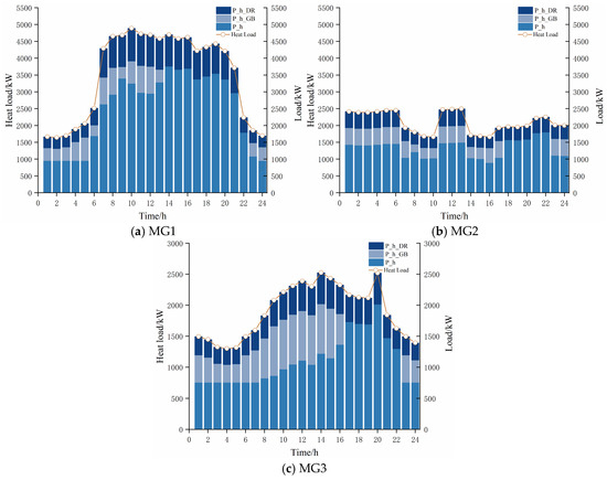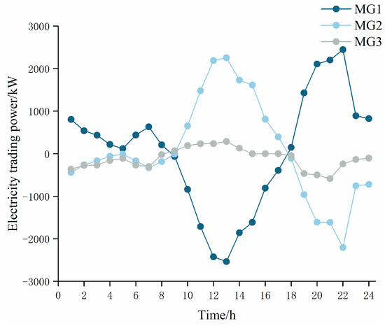 Cooperative games, unlike non-cooperative games, aim to maximize overall interest, and energy trading among various stakeholders is typically described as a Nash bargaining (NB) model. Ref. [17] developed a low-carbon economic operation model for electricity sharing among several MGs based on NB, allowing MGs to form a more cost-effective partnering alliance. Ref. [18] established an optimal operation strategy for multi-building integrated energy systems based on the NB model, which reduces electricity trading between multi-building integrated energy systems and the main power grid. Based on the energy interaction mechanism between MGs, Ref. [19] established an MG electricity sharing operation optimization model that takes into account the uncertainty of carbon trading and renewable energy. Ref. [20] measured the bargaining power based on each MG’s marginal contribution and conditional value-at-risk, and proposed an asymmetric Nash bargaining (ANB) method to fairly distribute the benefit. Ref. [21] developed a multi-microgrid electricity sharing operation model based on ANB by using the amount of the electricity as bargaining power to achieve a fair distribution of cooperative benefits. The literature noted above has provided a valuable exploration of the energy trading problem of MEMG networks based on NB, but most of the current focus is on the pure trading of electricity and ignores the trading of other energy sources, which will lead to the problem of limited comprehensive energy utilization.